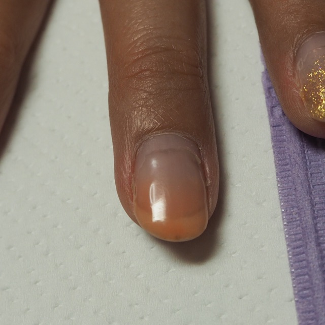 そして左手の薬指だけ、ライトピンクのラメパウダーとクリアジェルでグラデーションにしました。
